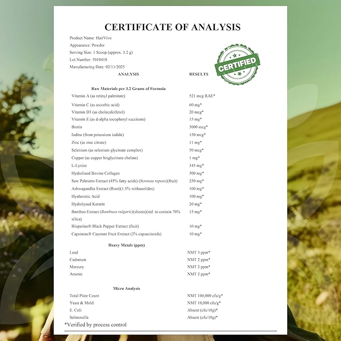 - MADE IN USA: HairVive is manufactured in the USA using foreign and US ingredients. This supplement is non-GMO and gluten-free.