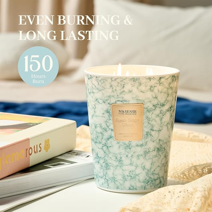 M&SENSE FreshSage Citrus Scented Candles for Home, 3-Wick Highly Scented Jar Candles, Extra Large Candle 35 Oz 150 Hours Long Lasting Burning, Relaxing Aromatherapy Candle for Stress Relief,Meditation