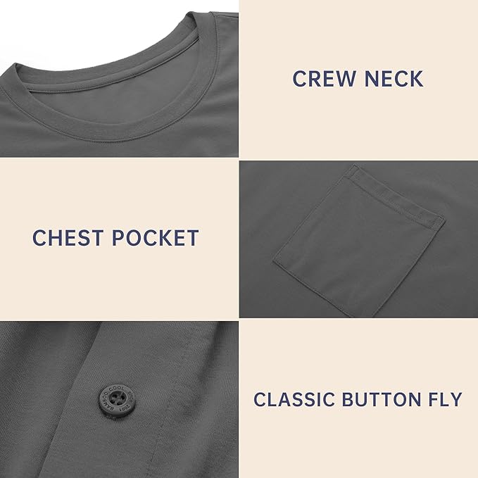 BAMBOO COOL Mens Pajama Set Summer Pjs Sleepwear Short Sleeve Shirts Soft Lightweight Sleep Sets with Pockets S-2XL