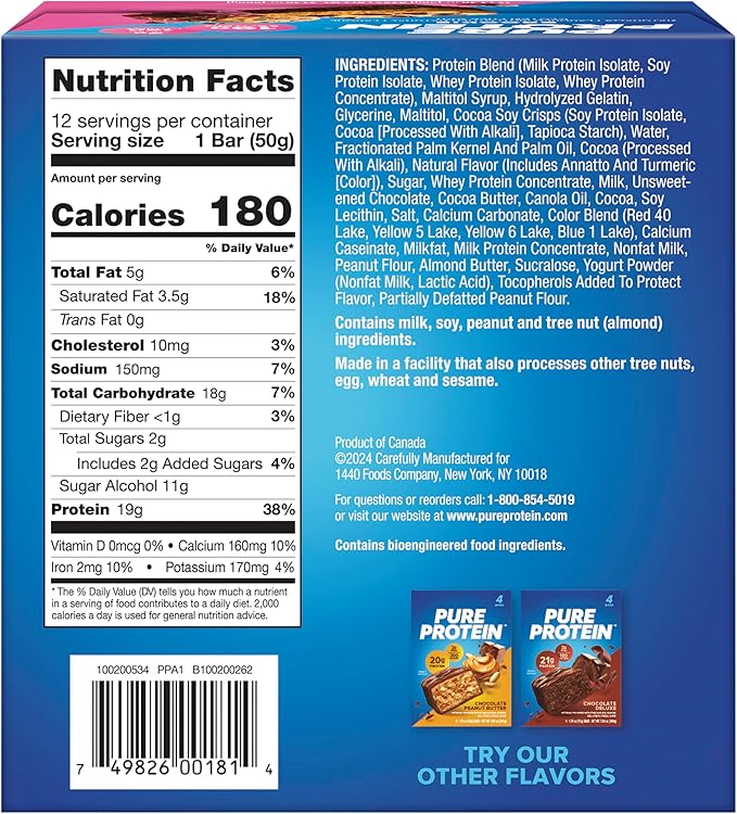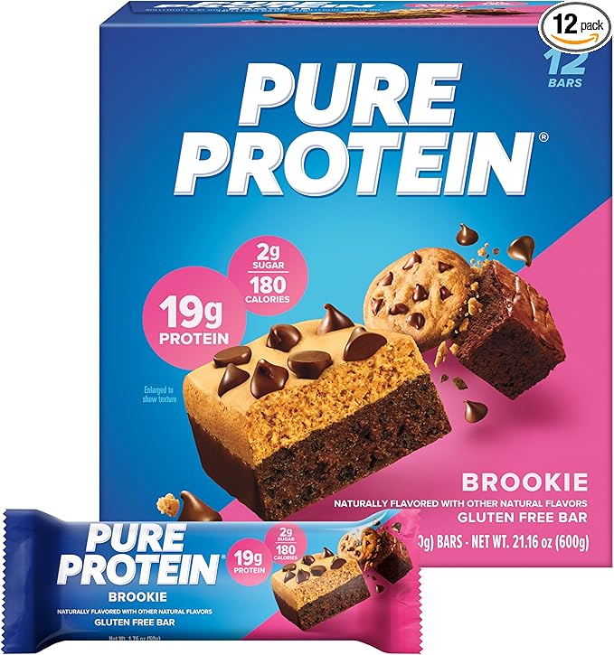 Pure Protein Bars, High Protein, Nutritious Snacks to Support Energy, Low Sugar, Gluten Free, Brookie, 1.76oz, 12 Count (Packaging May Vary)