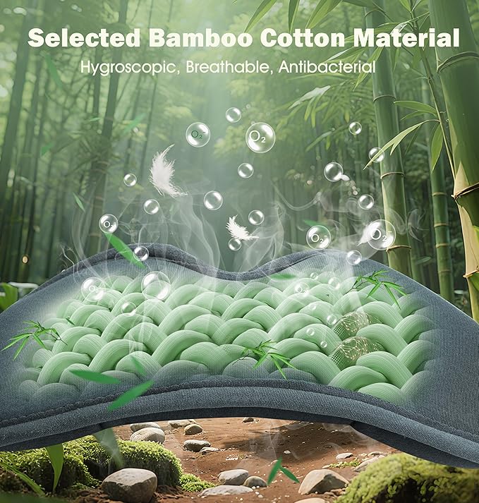 - ๐ 100% Light Blocking & Breathable Fit: Engineered with 3D ergonomic shaping, this bluetooth sleep mask blocks all light without squeezing your face. Plus, bamboo fiber wicks sweat 3x faster than cotton โ stay cool and dry all night.