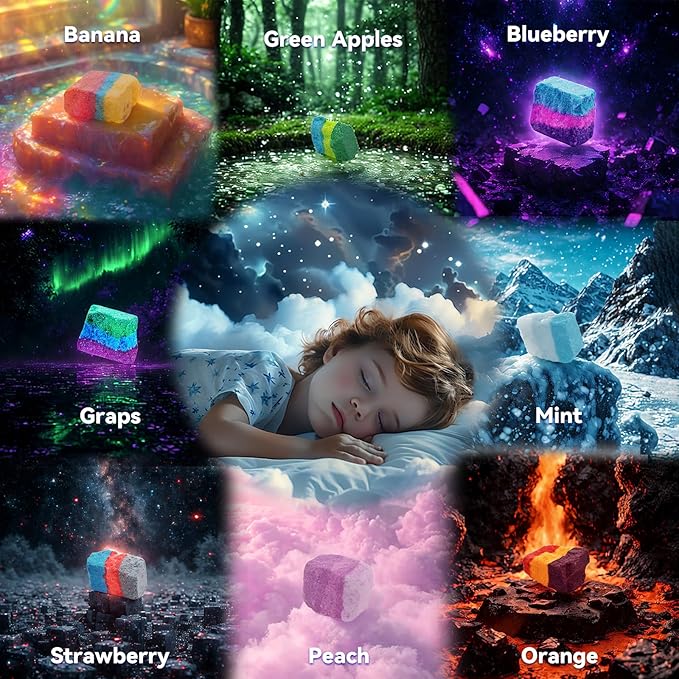 - 8-Fruit Sensory Garden: Nature’s aromatic playground! XmtJXn bath bomb releases authentic fruity essences: Energizing Citrus (Orange/Peach). Berry Medley (Blueberry/Strawberry/Grape). Crisp Greens (Mint/Green Apple/Banana).XmtJXn natural bath bombs for kids no synthetic fragrances—only plant-derived scent molecules for gentle immersion.