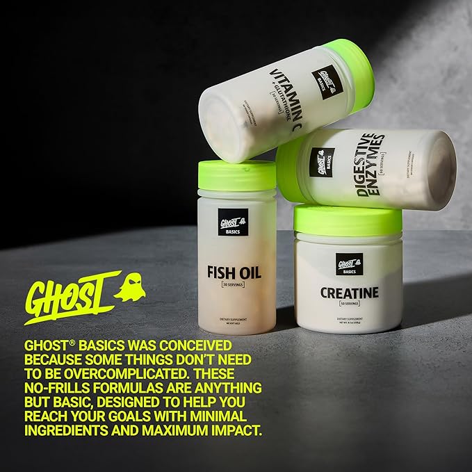 - Redefining Basic: GHOST Basics Creatine helps promote muscle recovery and reduce muscle fatigue.* Simple. Effective. No BS. 50 servings per tub.