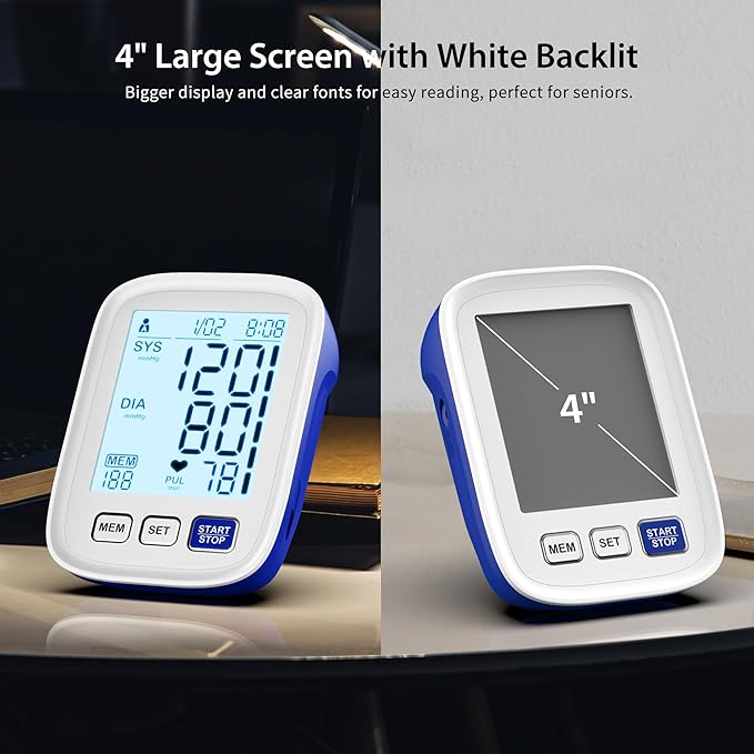 - Large, Easy-to-Read Display - The bright 4-inch LCD screen with soft light-blue backlight ensures your readings are clear and easy to read, even in low light. Perfect for seniors or anyone who needs larger text.
