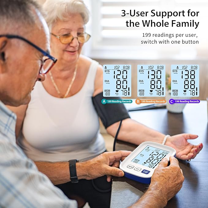 - Track for 3 Users - Keep track of up to 3 users’ blood pressure history, with each person having up to 199 readings saved. Great for families who want to stay on top of their health.