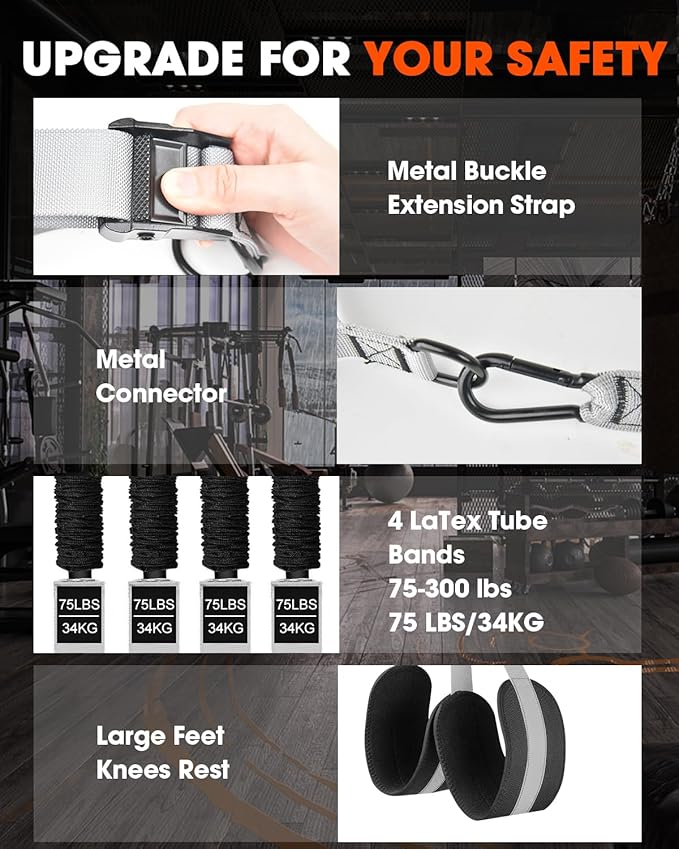 - ✅ 4-Tube Resistance System for All Levels- Engineered with four detachable latex tubes, each offering 75lbs of resistance, this pull-up assist band adapts to your evolving strength goals. Ideal for beginners needing more help or pros looking to squeeze in more reps after fatigue. Unlock your full potential with the versatility of these assisted pull up bands.