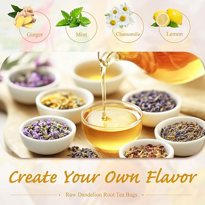 - 【Earthy & Rooty】Raw dandelion root tea has a bold, earthy flavor with a natural bitterness, a rooty undertone, and sometimes a hint of nutty or woody notes