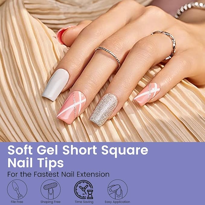 - Soft Gel Material for Comfort and Flexibility - Made from high-quality soft gel, these short nail tips square provide a comfortable and flexible fit that adapts perfectly to the natural shape of your nails. The gentle material ensures no irritation while offering a durable and long-lasting finish, making them perfect for both everyday use and special occasions
