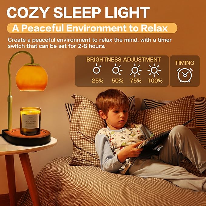 - Dimming & Timing: With its four-level brightness adjustment, you can effortlessly create the perfect lighting ambiance tailored to your preferences, allowing you to set the mood just right for any occasion. Additionally, this DALUXshop candle warmer lamp with timer offers three convenient timing options, 2 hours, 4 hours, and 8 hours, enabling you to seamlessly integrate it into your lifestyle, adding extra convenience to your daily routines. Our candle warmer lamp epitomizes versatility and elegance, catering to all your lighting needs with grace and finesse.