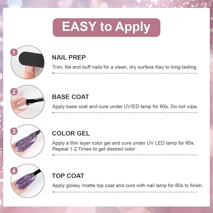 - Nail Lamp Cure: They require a nail lamp to cure, and the gel lasts up to 21 days after sufficient curing time. This product does not contain nail lamp, you need to purchase it by yourself!
