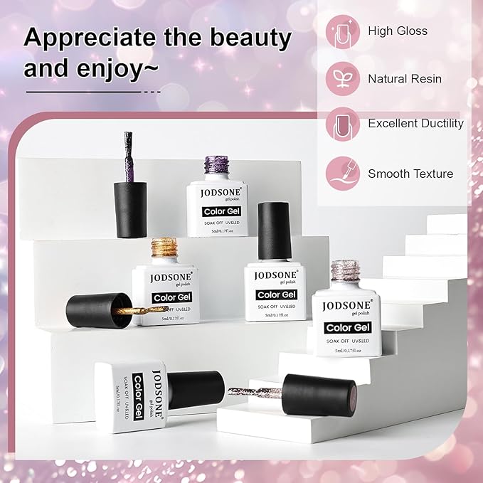 JODSONE 12 Bottles Gel Nail Polish Set with Base Coat and Top Coat Great Holiday Gift for Ladies and Girls