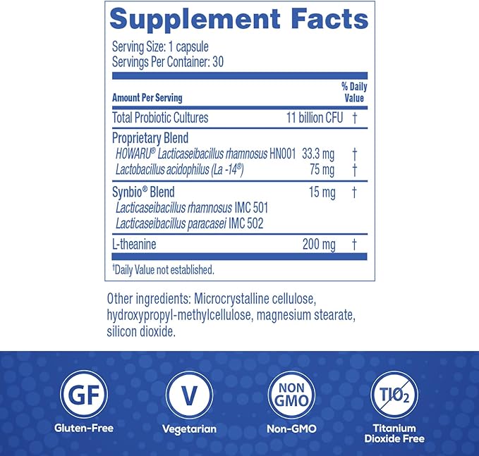 - Special Ingredients : HOWARU Lacticaseibacillus rhamnosus HN001, Lactobacillus acidophilus LA-14, Lacticaseibacillus rhamnosus IMC501, Lacticaseibacillus paracasei IMC 502 HOWARU Lacticaseibacillus rhamnosus HN001, Lactobacillus acidophilus LA-14, Lacticaseibacillus rhamnosus IMC501, Lacticaseibacillus paracasei IMC 502