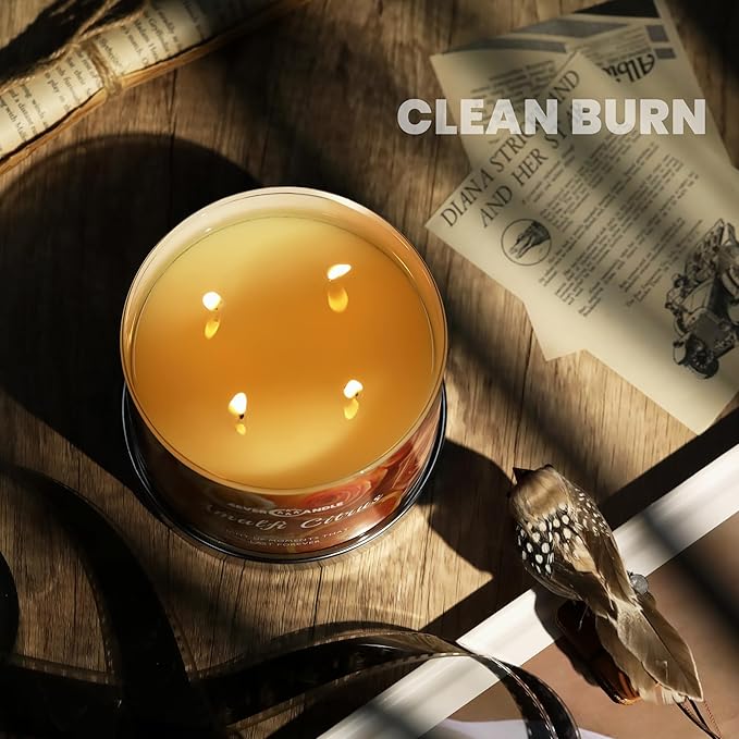 Amalfi Citrus Scented Candles, 18oz Soy Candles Non Toxic 4-Wick Large Candle Jars, Over 50 Hours of Burning Time, Ideal for Gifting, Events, Home Decor