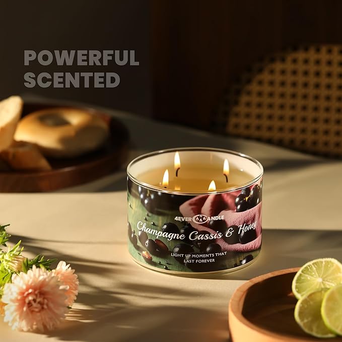 - 【4-Wick Design for Even Burning】4EVER candle features 4 high-quality cotton wicks that ensure even burning, preventing tunneling and extending the candle’s lifespan. Each wick is carefully designed to provide a stable flame and optimal burn performance.