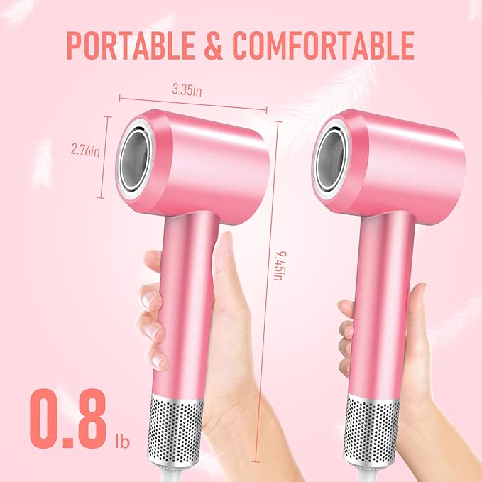 - 【Noise Reduction Design】By optimizing the motor,our professional hair dryer comes with the ionic low noise technology, to reduce frizz and enhance shinke, so that your hair will be ultra smooth for that classy look and feel for any occasion. Please do not touch the air nozzle during use to prevent burns.
