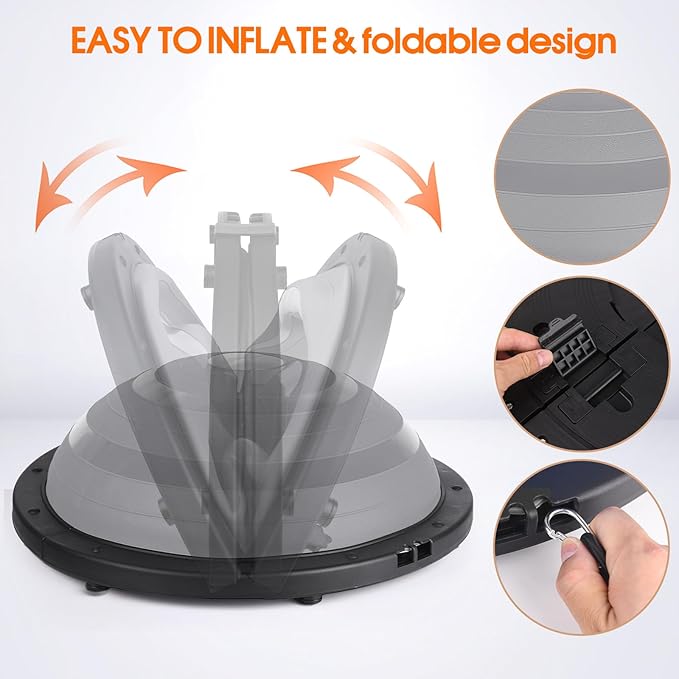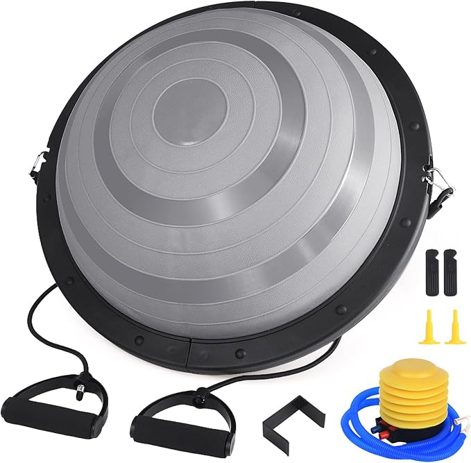 Foldable Balance Ball Trainer with Resistance Bands – Home Workout Equipment with Pump & Non-Slip Base – Core Strength Training Tool for Yoga, Pilates, Balance & Stability