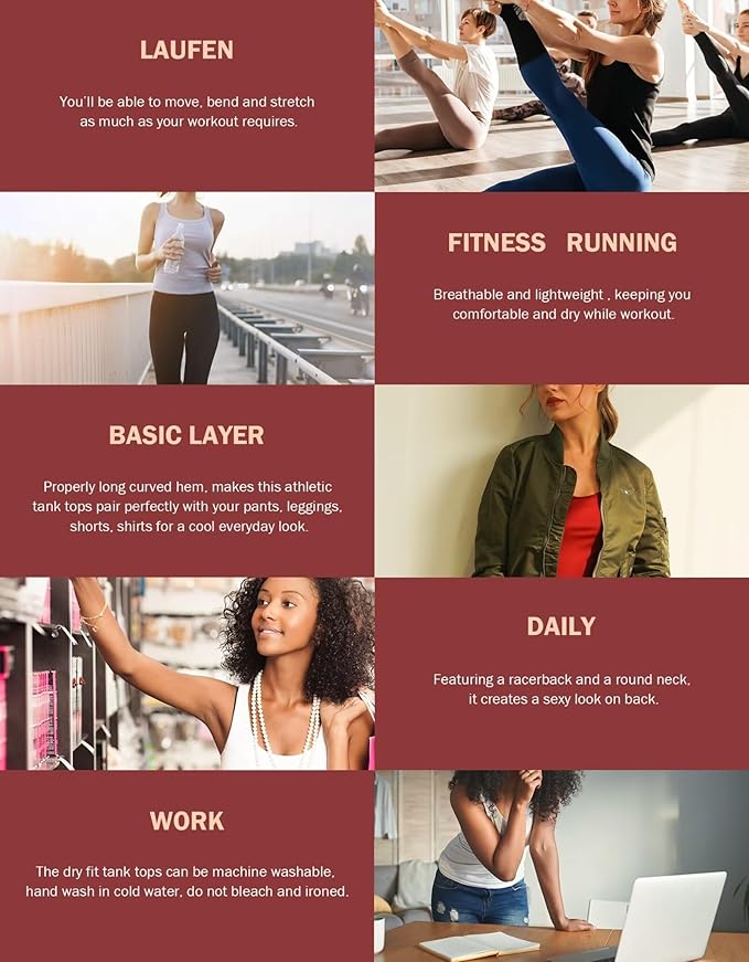 • DURABLE FOR BASIC AND SPORTS USE IN SUMMMER: Perfect option during various indoor activities and outdoor excursion, these undershirts not only can be a lounge-wear as a basic layer, it also can be a exercise tank for workouts, yoga, running, gym and fitness everyday wear. And the slimming tank tops will never get out of shape.