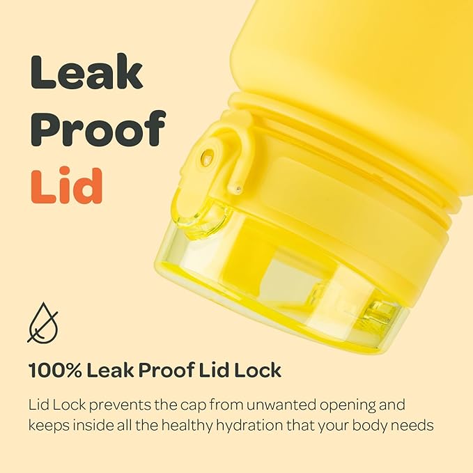 - ๐ WATER BOTTLE WITH TIME MARKER A quick glance at the intuitive timeline will tell you when to take your next sip throughout the day. No more guesswork, you will conquer your daily water intake goal like clockwork!