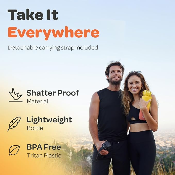 - ๐ฑ SAFE, NON-TOXIC, DURABLE This shatterproof, light and reusable water bottle is made of 100% BPA Free Tritan plastic. You can relax and enjoy your water clear of harmful chemicals, plastic taste or bad smell!