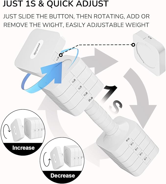 - The mechanism to connect and disconnect the additional weighted pieces are simple to use and twist into place, dumbbell set adjustable weight can be quickly to adjust for more or less weight.