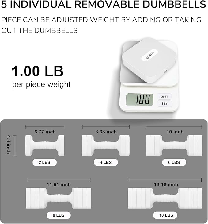 - 5 In 1 dumbbell set adjustable dumbbell sets for men women. Our dumbbell sets consists of 10 weight dumbbell plate, 20 lb is total weight for the pair. Each dumbell has max weight of 10 lbs for a combined total weight of 20 lbs. [Each Dumbbell Can Adjust: 2 4 6 8 10lbs, One Pair Can Adjust: 4 8 12 16 20 lbs]