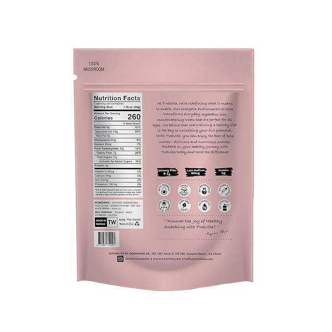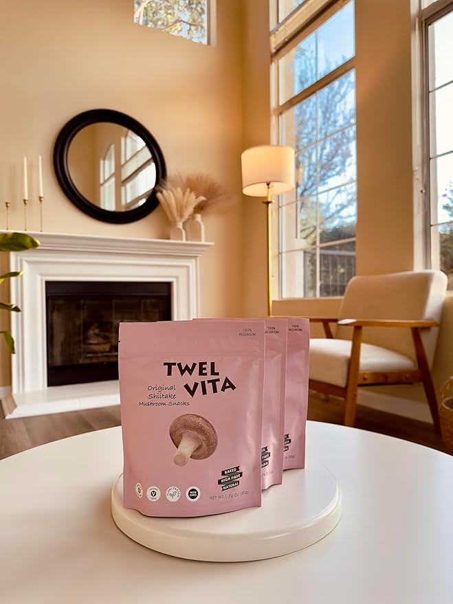 TwelVita Wholesome Baked Shiitake Mushroom Crisps, Vegan Snacks, Clean Label, Non-GMO, Gluten-Free, 1.76 oz ea, Pack of 4