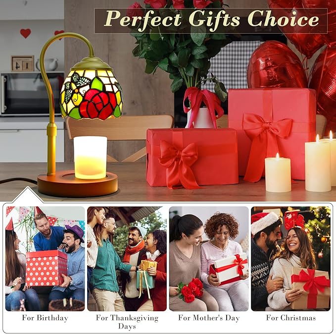 - For Most Types of Candles: It is 4 inches from the lampshade to the base and is compatible with most candles, such as jar candles. The wooden base of this modern candle warmer is equipped with non-slip pads to ensure stability and safety when you use this flower candle warmer lamp; this vintage stained glass lamp is perfect as a beautiful home decor in your bedroom, living room, study, office, and yoga room.