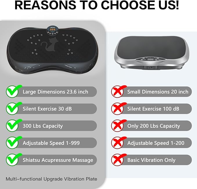 - Stable and reliable safety guarantee:The vibration machine has a solid structure and is equipped with multiple powerful anti-slip suction cups at the bottom, firmly grasping the ground to ensure your safety and stability during exercise. The low-noise motor design allows you to enjoy a quiet personal time without worrying about creating too much disturbance during your workout. We are committed to providing a safe, reliable and durable home exercise aid.