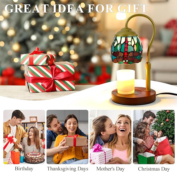 - Ideal Gift Choice: The electric candle warmer with tiffany style stained glass elegant design and soft glow, is suitable for use the study room, living room, bedroom, yoga room or office. This vintage candle warmer lamp ideal gifts choice for family, friends and loved ones on birthdays, Mother's Day, Valentine's Day, Thanksgiving, housewarming or Christmas