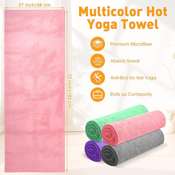 - Product Includes: you will receive 4 pieces non slip hot yoga towels in various colors, enough for you to change and identify; Yoga towels are suitable for many types of yoga and exercise; You can also give yoga towels as birthday gifts, Christmas gifts to your family, friends, colleagues