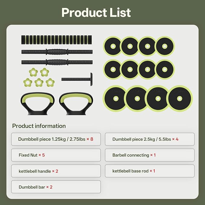 - Free Choice of Dumbells Weights: The adjustable dumbbells wide ranging from 5.5lb, 11/16/20/22/25/30/33/35/40/44lbs etc. Its detachable design increases the flexibility of use different dumbells to do various excersize fits whether man and women, even teenager or elderly. Quick assembled meeting your different exercise needs at home or gym.