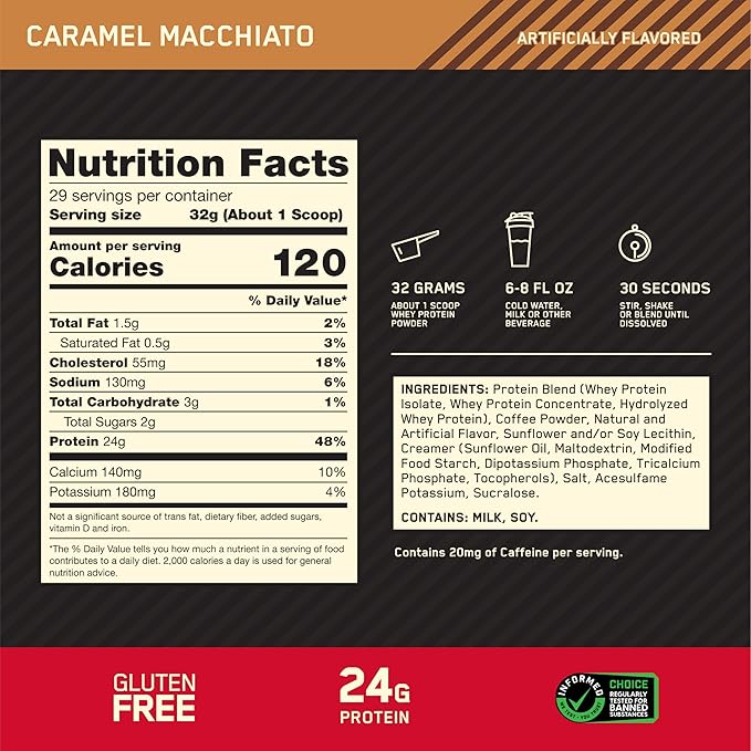 Optimum Nutrition New Flavor Gold Standard 100% Whey Protein Powder, Caramel Macchiato, 2 Pound (Pack of 1) (Packaging May Vary)