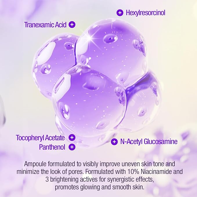 - [10% Niacinamide Care for Radiant Texture] This ampoule contains 10% niacinamide to help refine skin texture and even out overall tone. It supports a smooth, radiant complexion by targeting visible signs of roughness and imbalance.
