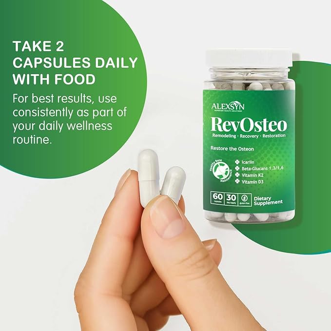 RevOsteo Bone & Metabolic Support – Advanced Bone Nutrition with Icariins, Vitamin K2, D3, Boron & Beta-Glucans – Vegan, Gluten-Free, Made in USA – 60 Capsules, 30-Day Supply