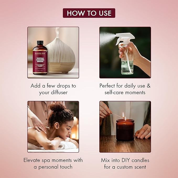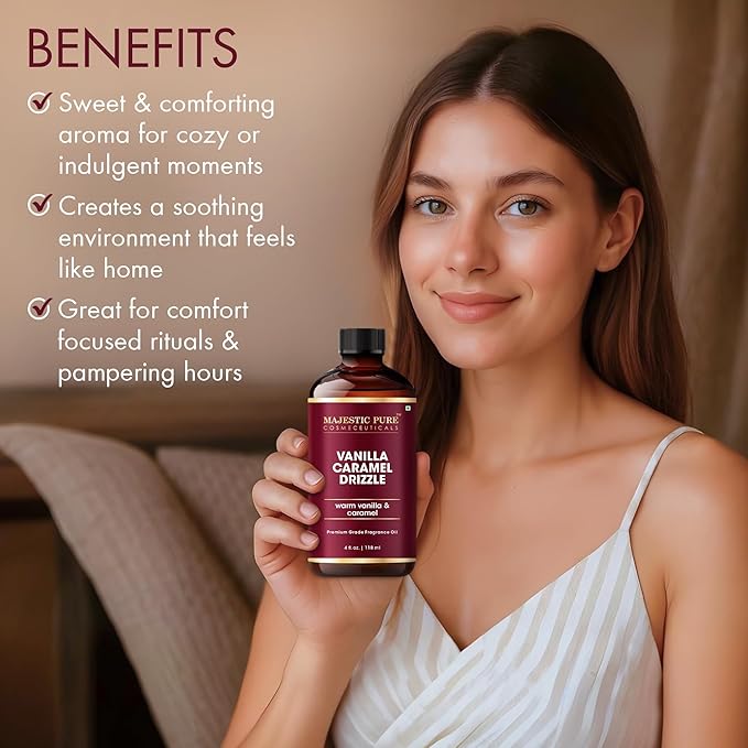 MAJESTIC PURE Vanilla Caramel Drizzle Premium Oil | Vanilla & Caramel Flavour | Premium Grade Fragrance Oil Used in Diffusers, DIY, Self Care | 4 Fl Oz
