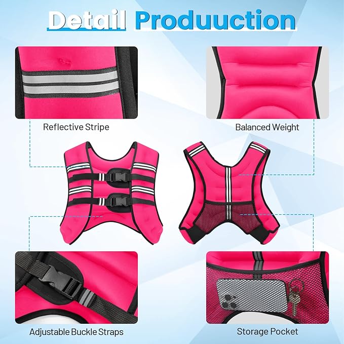 - THOUGHTFUL DESIGN -The adjustable weighted vest has reflective strips on the front and back to ensure the safety of the user in low-light environments. There is an elastic mesh pocket on the back to store mobile phones, car keys, and other personal belongings.