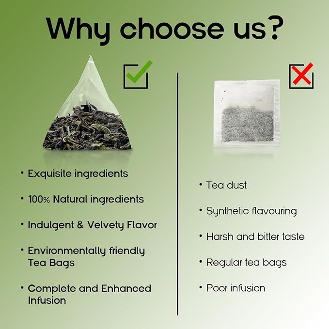 - Triangle Design: Unique pyramid-shaped bags provide optimal infusion space for flavors to develop fully. The innovative triangle design ensures a more intense and satisfying tea experience.