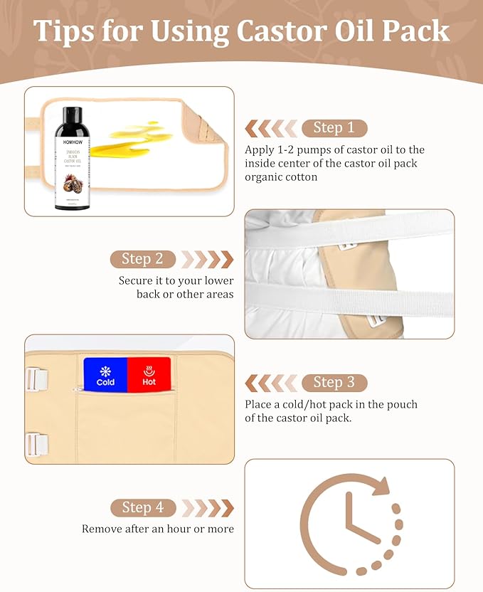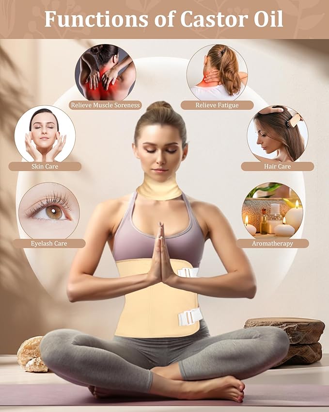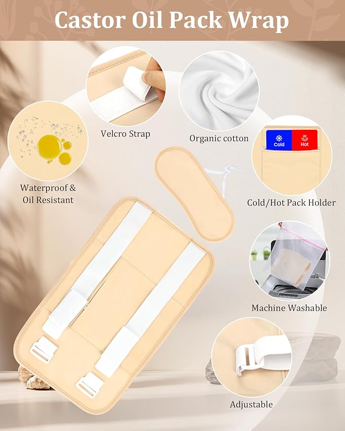 - Skin Friendiy Material: Castor oil wrap is made of 4 layers of high-density organic cotton material, which is skin-friendly and comfortable. The caster oil packs inner layer is made from soft organic cotton flannel cloth fabric fits closely to the skin, which helps absorb and prevent castor oil from penetrating into clothing.
