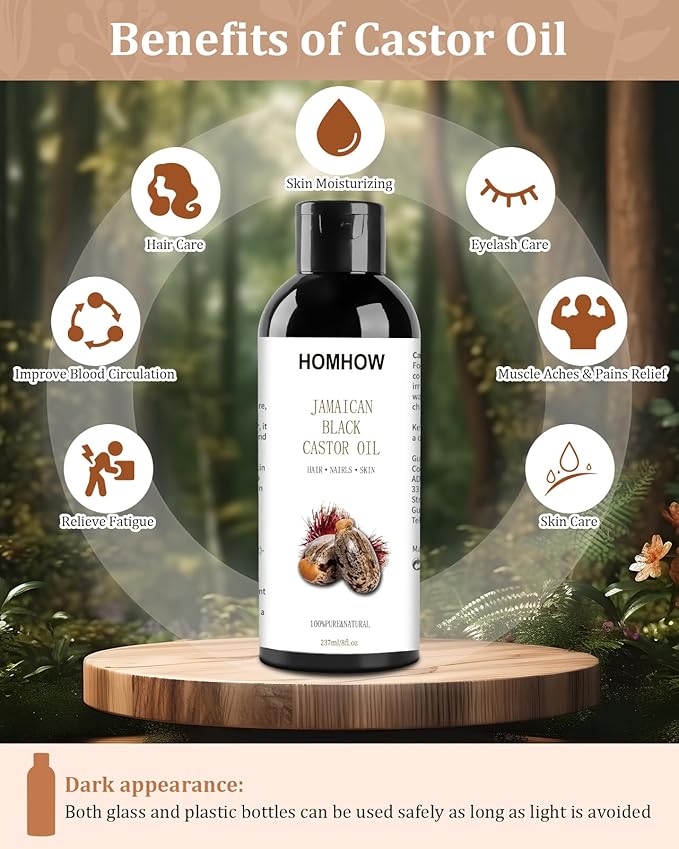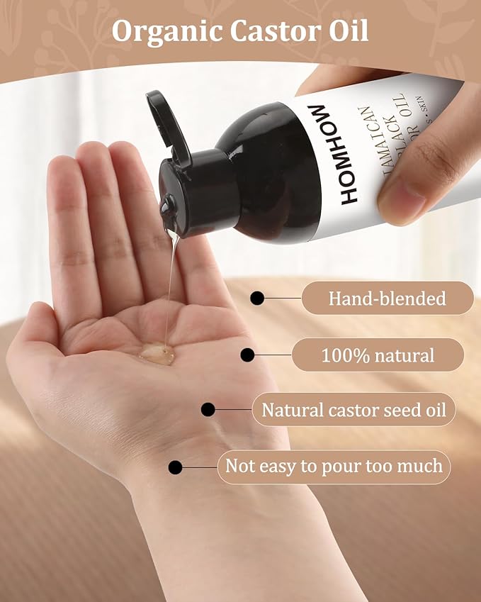- Naturally Organic: Hand blended 100% natural jamaican black castor oil, rich in vitamins and fatty acids, help you to get the feeling of release from the stomach/neck and whole body, increase circulation. In addition, organic castor oil moisturizes the skin, nourishes the scalp, and promotes the growth of hair, eyebrows and nail.