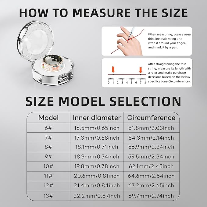 Smart Ring Health Tracker, for men and women, equipped with heart rate monitor, sleep tracker, 8 exercise modes, step counter, 5-7 days battery life, no subscription fee, IP68 waterproof R18 (6)
