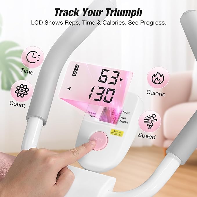 - Track Progress: The Ab workout machine includes an LCD display: Stay motivated! Real-time display of repetitions, exercise time, and calorie burn—no guesswork needed