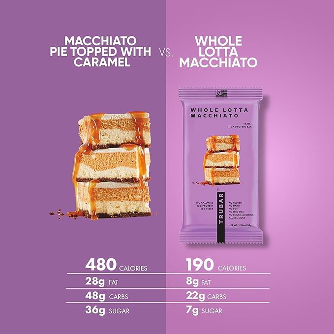 TRUBAR Vegan Protein Bar Variety Pack, Assorted Flavors, Peanut Butter, Macchiato, Cookie Dough, Gluten Free, Vegan Protein Snacks, 12G Plant-Based Protein, High Fiber, Healthy Protein Bars, 12 CT
