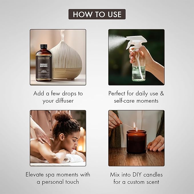 MAJESTIC PURE | Coffee & Roasted Nuts Premium & Free from Mineral Oil | Coffee Flavour, Cocoa Extract, Nutmeg Oil Used in Diffusers, DIY, Self Care | 4 fl oz
