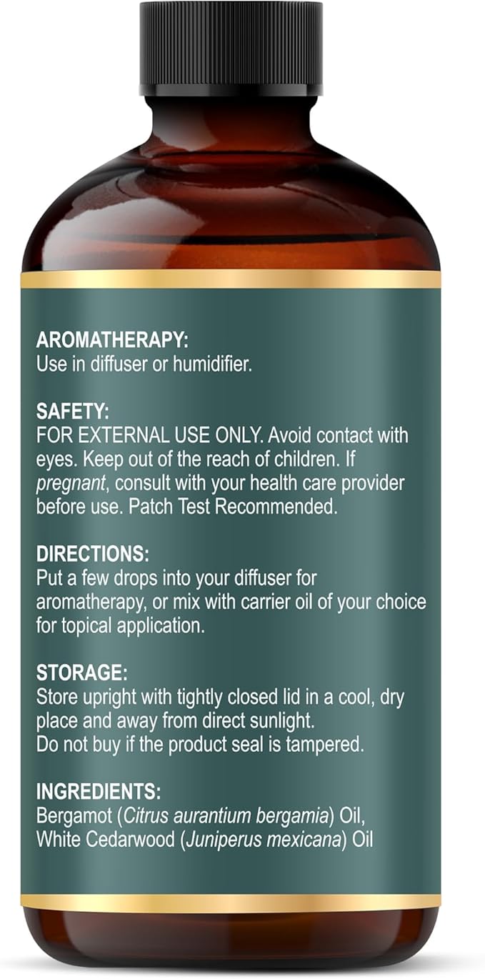 MAJESTIC PURE Zesty Bergamot & White Cedarwood Premium Oil | 100% Natural | Used in Diffuers, DIY, Self Care | 4 fl oz