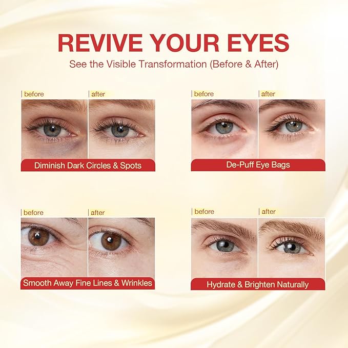 - Weekly Luxury Care, One Patch Per Week: GONIM 360° under eye mask, eye patches for women nourishes and renews the delicate eye area in 8 weeks. This eye treatment product reduces dark circles, puffiness, and eye bags—ideal eye bags treatment for women and self care.