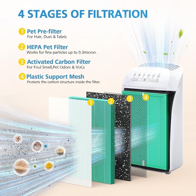 - 【FILTER DESIGNED FOR PET】Our MSA3/MSA3S air purifier pet care filter features a 4-stage filtration design. Compared with original filter, strengthened activated carbon part to neutralizes odors from pets better. Pet care filters are more efficient at working for odors