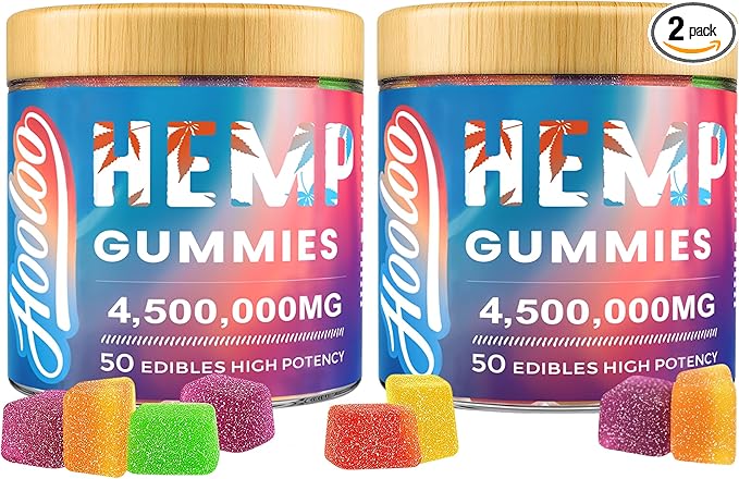 HOOLOO Hemp Gummies for Deep Bedtime Support - 4,500,000MG 2 Packs 6 Fruity Flavors Edibles for Adults - Made in USA