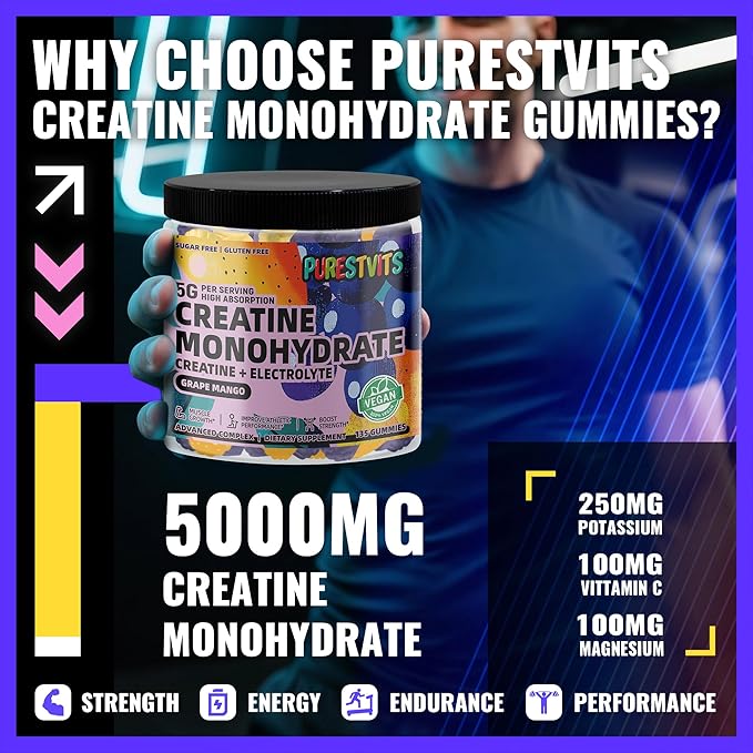 - [Premium Formula,Maximum Efficacy]: Our Creatine monohydrate gummies contains 5g=3 gummies pure creatine monohydrate per serving combined for Maximum Benefits.