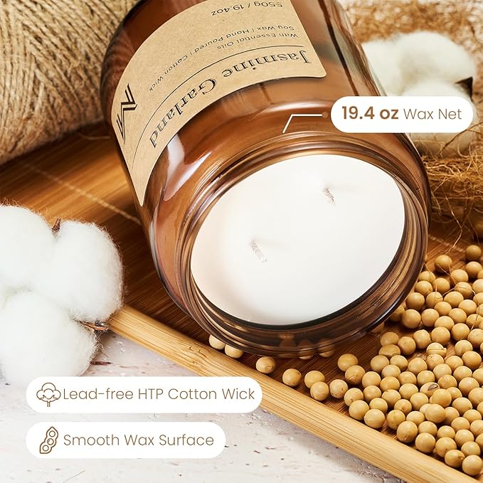 M&SENSE Jasmine Garland Home Scented Candle | 19.4oz, 115-Hour Burn | Natural Organic Soy Wax | Long-Lasting for Stress Relief and Gifting | for Bedroom,Relaxing SPA,Office