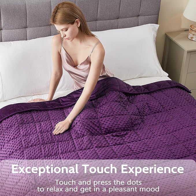 - PREMIUM MATERIAL: The weighted blanket is made of soft breathable minky material and filled with 0.8-1 mm non-toxic hypo-allergenic glass beads, suitable for all seasons. This minky dots weighted blanket could providing a cozy and warm sensation in the winter. Our minky dots weighted blankets are designed with bubble dots to give you an extraordinary tactile experience with their raised dots for added comfort